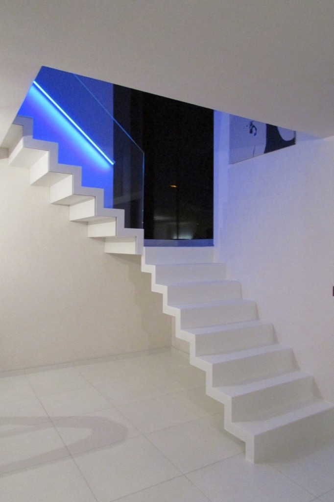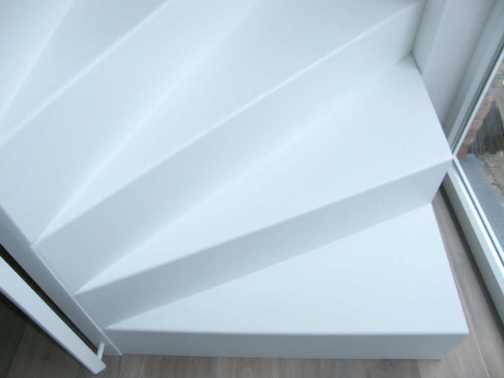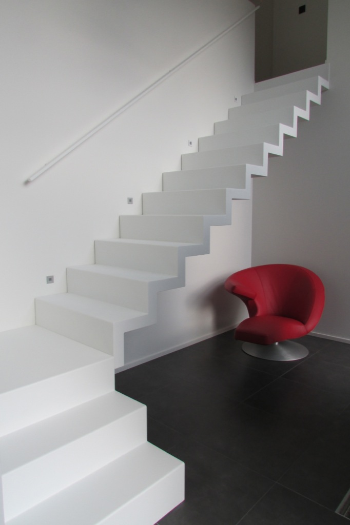Avec un couleur accent sur le mur sous-jacente, cet escalier est bien mis en valeur. Grâce à l’enduisage en laque en poudre dur, le Pearl White est aussi facile d'entretien et durable.