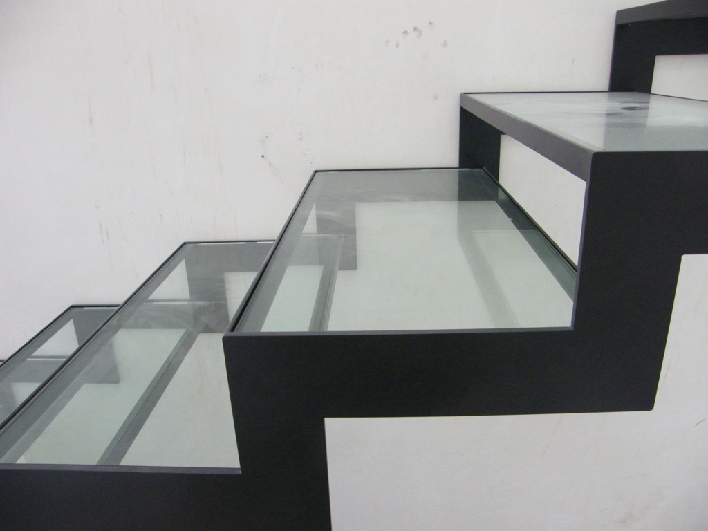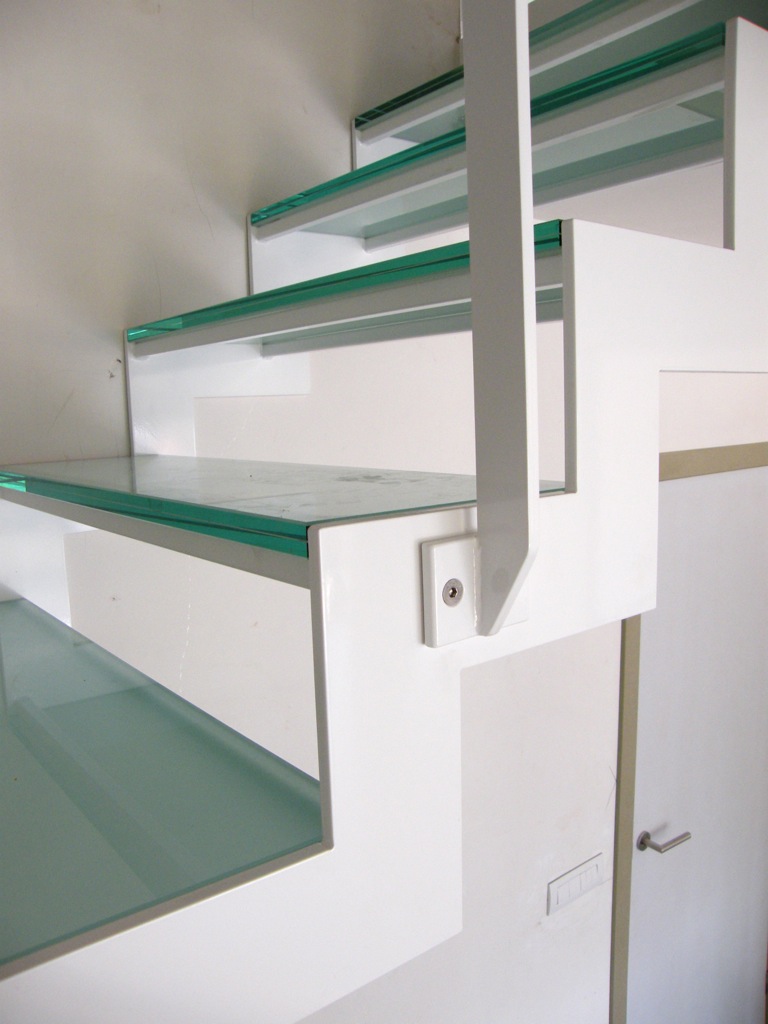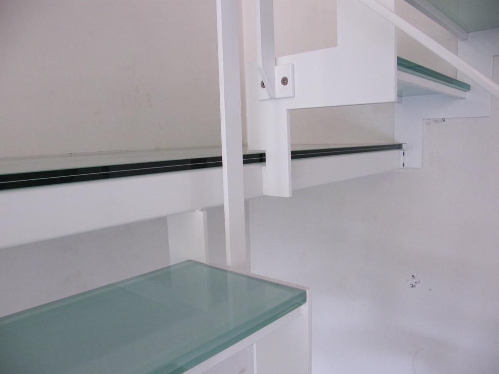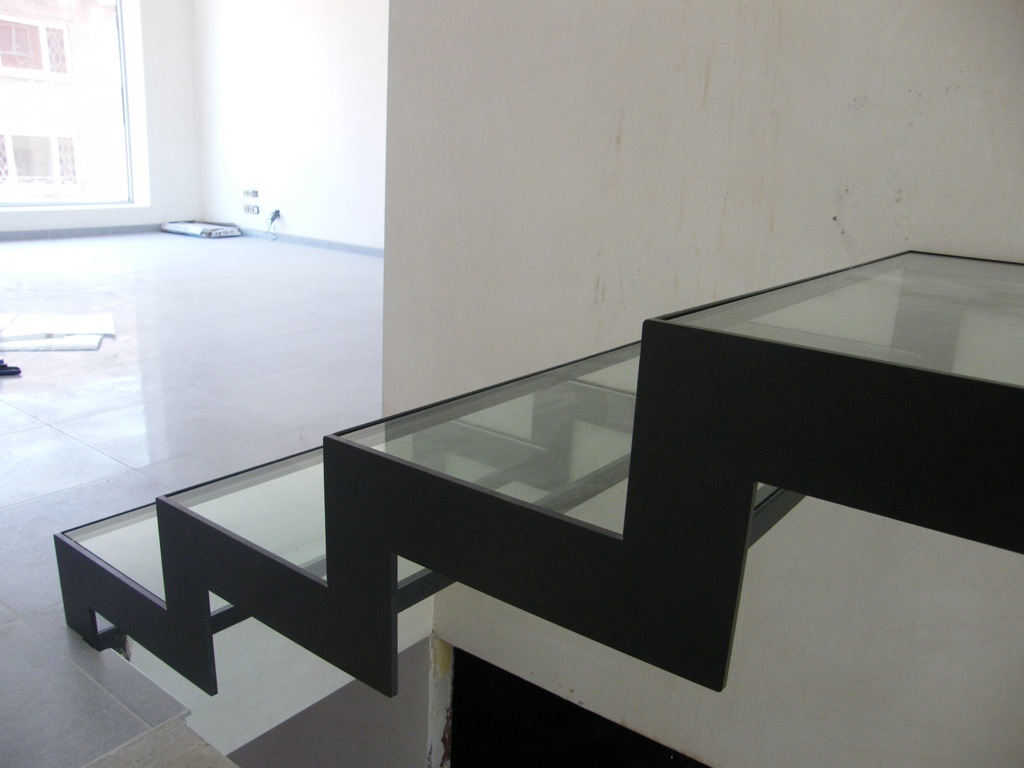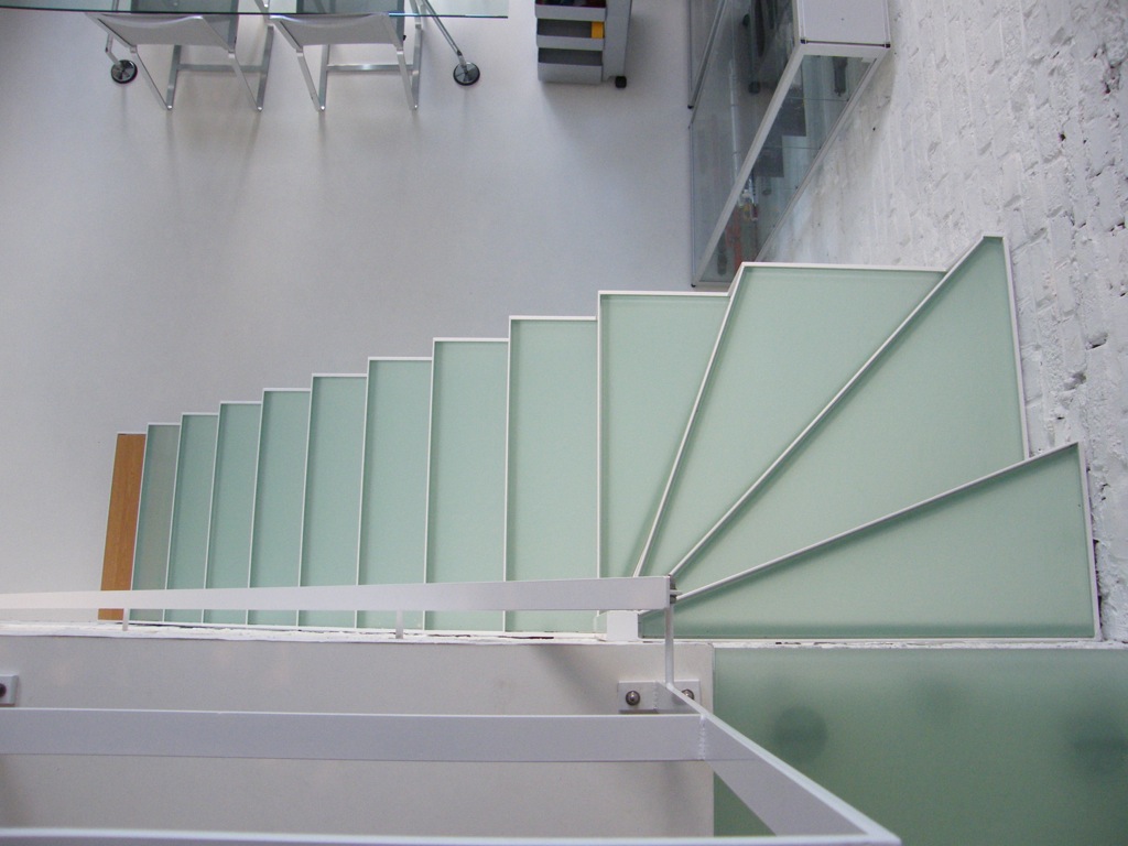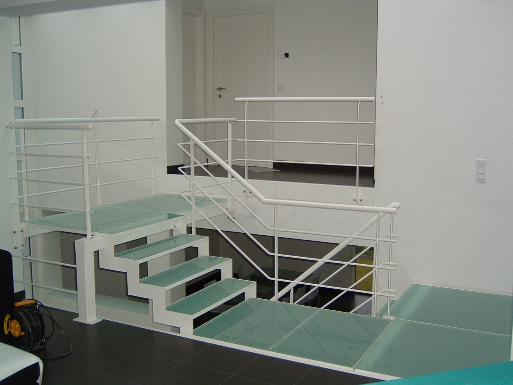 Grâce à sa structure porteuse plane et les marches en verre intermédiaire, il obtient son aspect familier. L’escalier est aussi disponible en verre feuilleté dépoli ou transparent de sécurité. On trouvera les surfaces portantes en de différentes couleurs RAL.