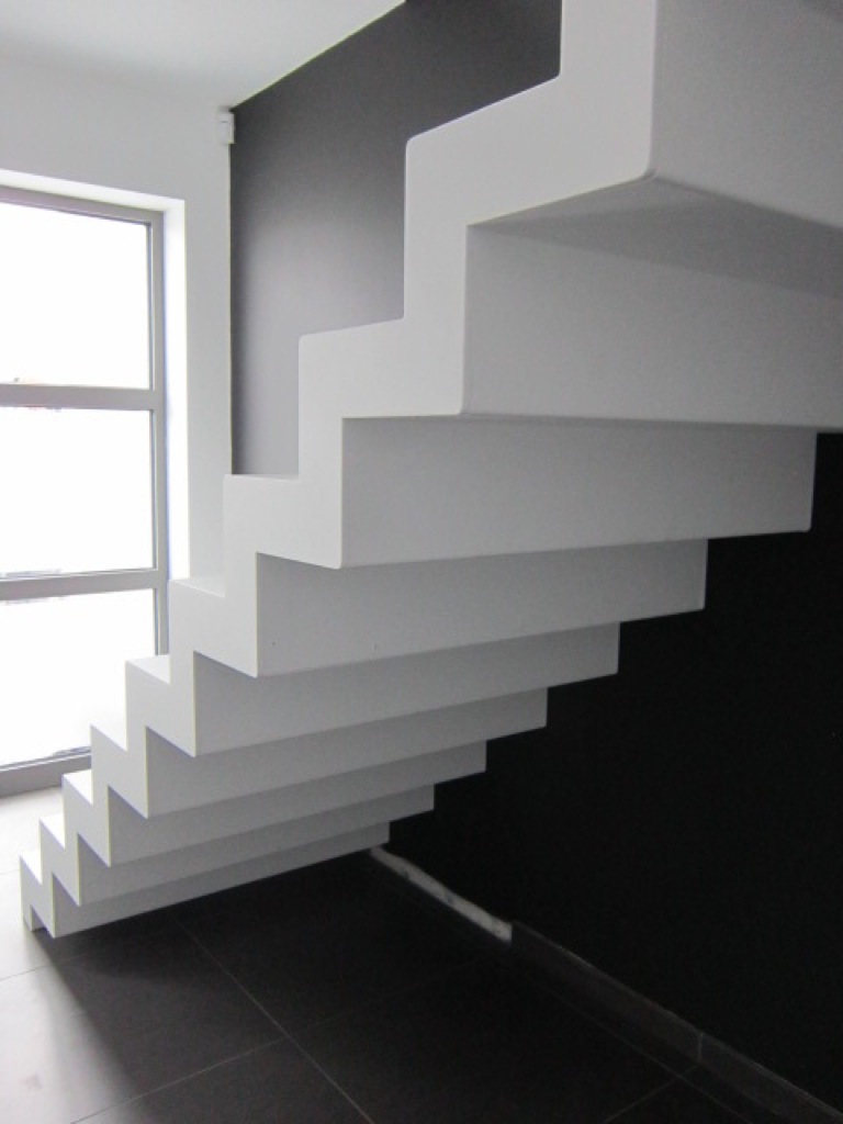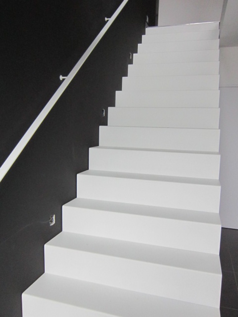 Met een accent kleur op de achterliggende muur komt deze trap mooi tot zijn recht. Door de harde poederlak coating is de Big White ook makkelijk in onderhoud.